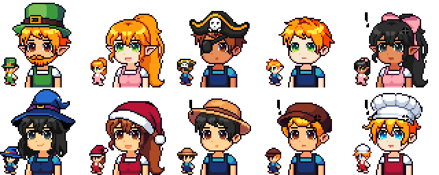 Also, I noticed that in the Aseprite files I can easily switch between different hairstyles, but changing the hair color seems to require editing the pixels manually. Would it be possible to add some built-in color variations or an easier way to swap colors in Aseprite (for example using palettes or layers) in a future update?
