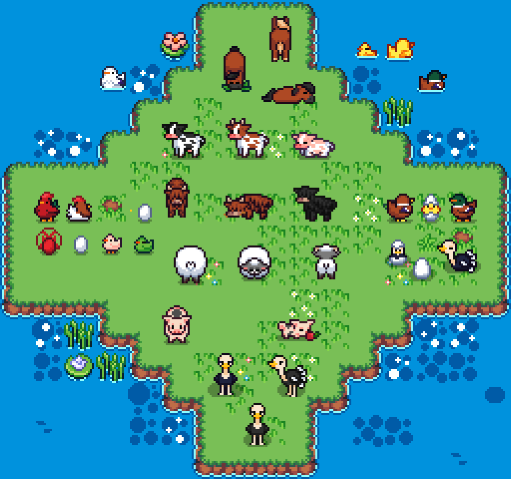 Amazing pack! It gives you so much possibilities for creating a game. I have one suggestion: It would be cool if there were assets for milk & wool so you have more to collect from your farm animals. Maybe also different wool types (ostrich and sheep wool).